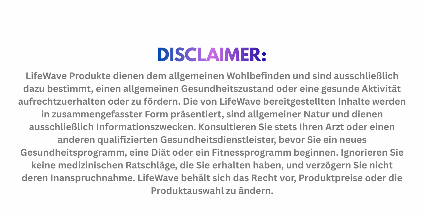 LifeWave ist ein bahnbrechendes Life-Technology-Unternehmen, das sich der Ehrung des Lichts des Lebens und der Nutzung der natürlichen Energie des Körpers verschrieben hat, um einen allgemeinen Gesundheitszustand und gesunde Aktivitäten für Ihr Wohlbefinden zu fördern.